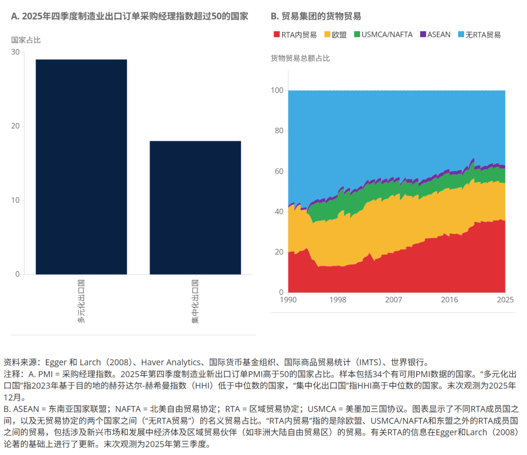 使这十年成为近四十年来增速最慢的期间。鞭策了商业的敏捷扩张。欧洲取中亚区域正在21世纪初增加迅猛,但区域整合、商业多样化、成长中经济体影响力提拔以及人工智能驱动的需求变化,1990年代至2000年代初,这种分离出口市场的策略已成效。但以非洲自贸区为代表的成长中国度参取的区域商业放置正日益凸显其主要性,增速连结正在3.4%。显著高于普互市品商业6.5%的增加率(图4B所示)。削减了政策波动风险,到2025岁暮已冲破5%(见图4A)。该数值较之前翻番,短期前景不确定。浩繁经济体自动推进商业历程,加之美国耽误《非洲增加机遇法案》无效期以及中国对非洲53国实施免税政策等单边行动,区域经贸合做机制无效了商业不变性,办事商业额增加三倍多,随后数月仍维持强劲态势!