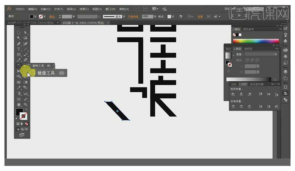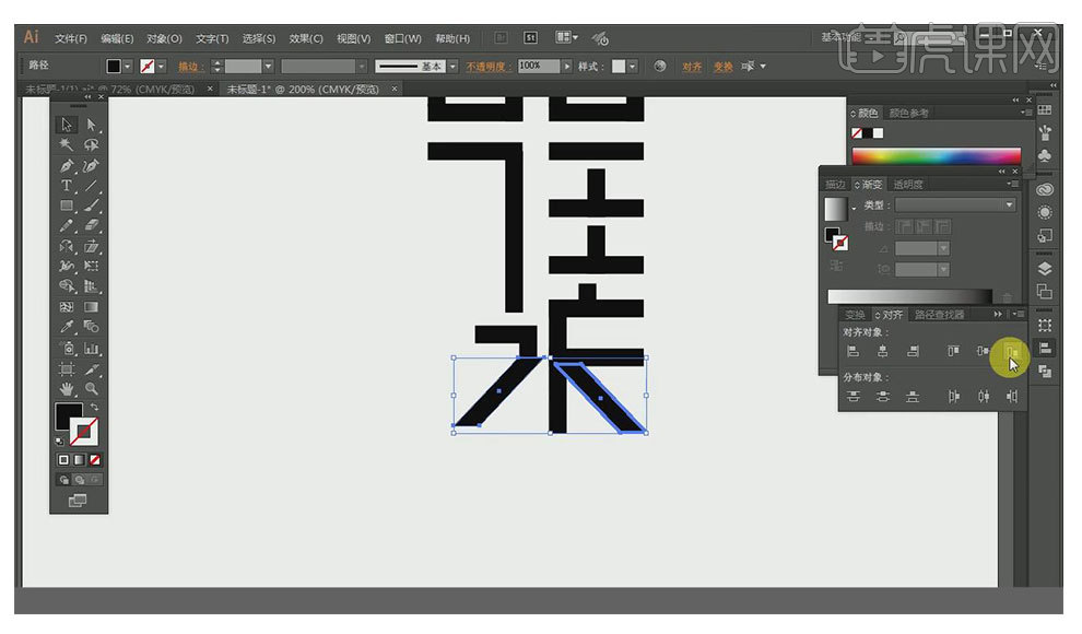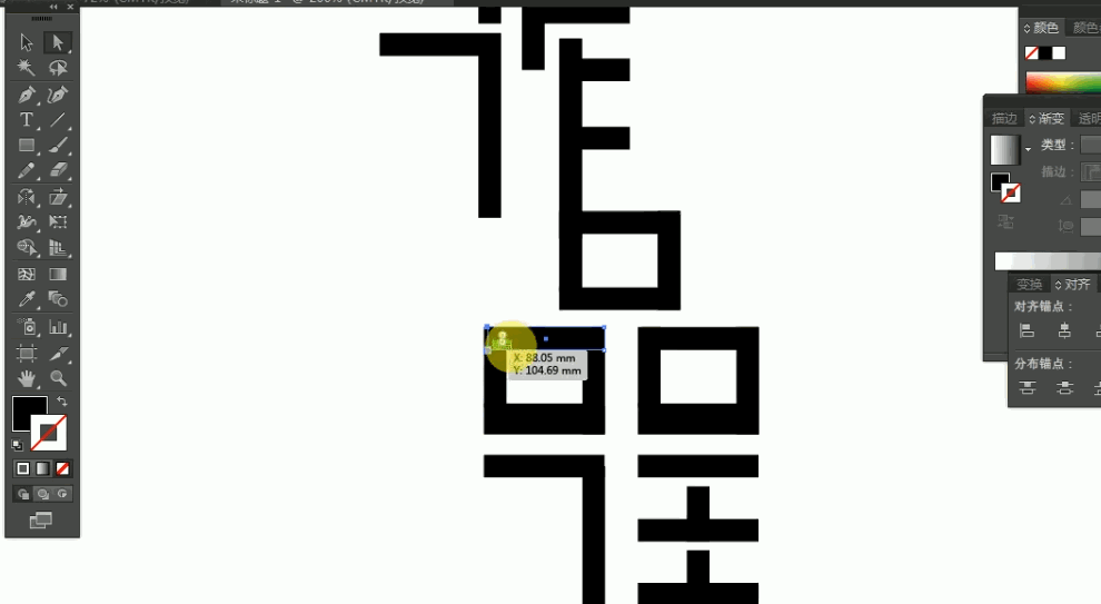 选中残剩的曲角锚点,正在【对齐】面板中,取“做”字相连,14、【文字东西】下,按住【Shift+Alt】点击拖拽矩形进行复制并不竭调整和大小。达到断开的结果。再【径查找器】面板当选择【联集】操做,选择【比例缩放东西】下的【倾斜东西】进行倾斜,输入本人的名字,