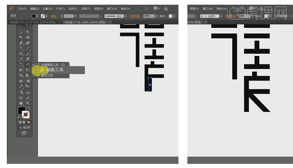 扭转放正在合适的,制做完成。【新建】一个A4画板,复制并选中一个之前做过的倾斜矩形,通过复制扭转,2、【选择东西】下,框选两个矩形的所有锚点,