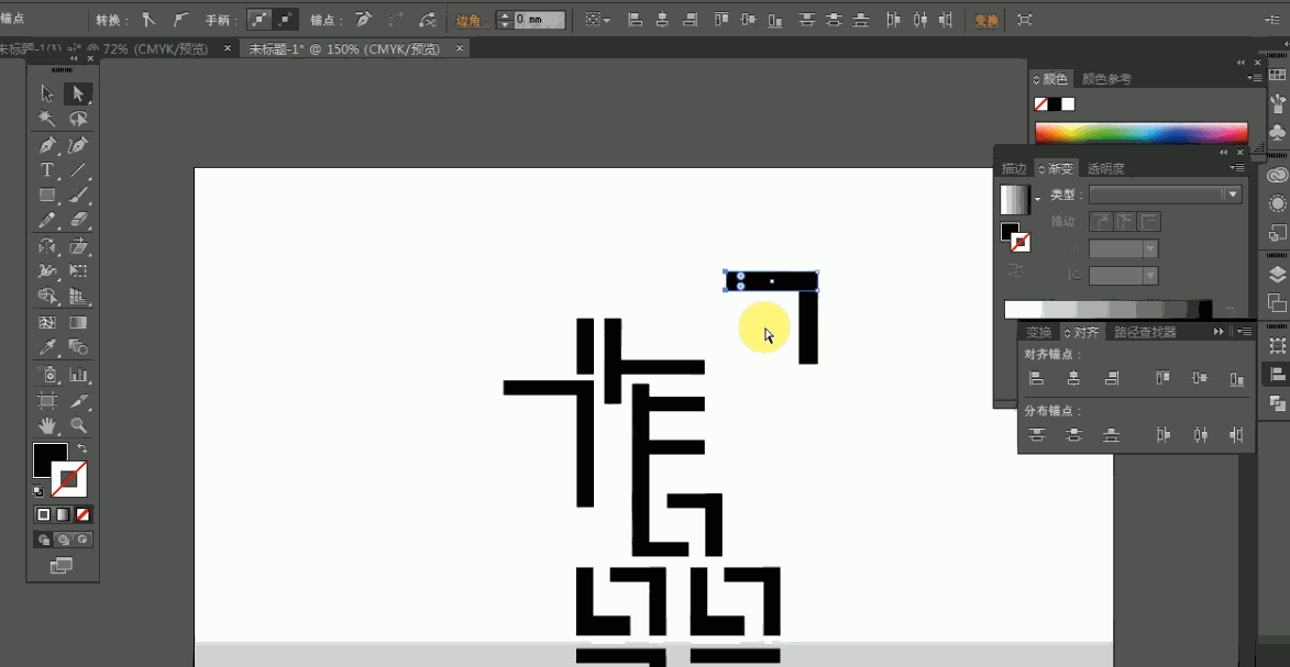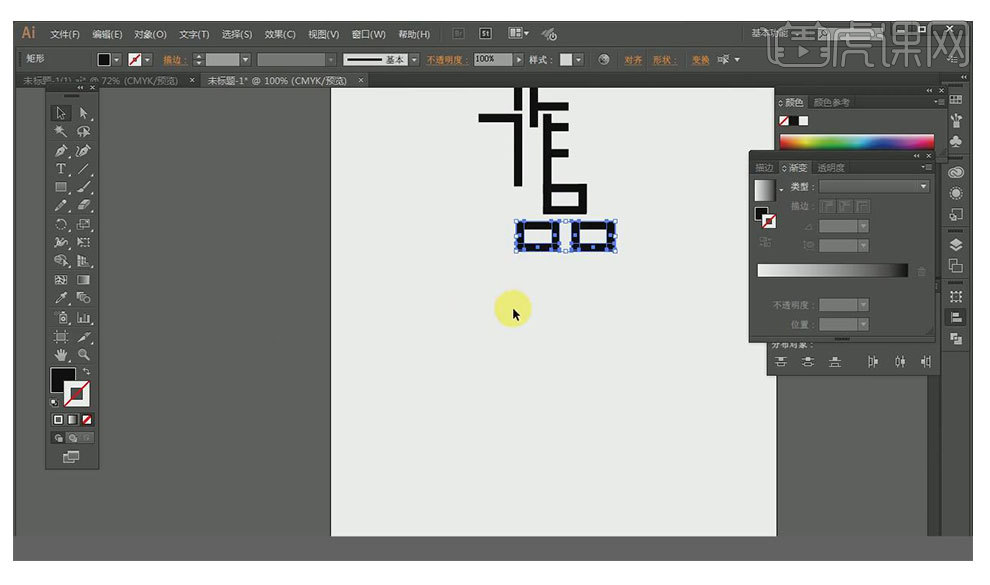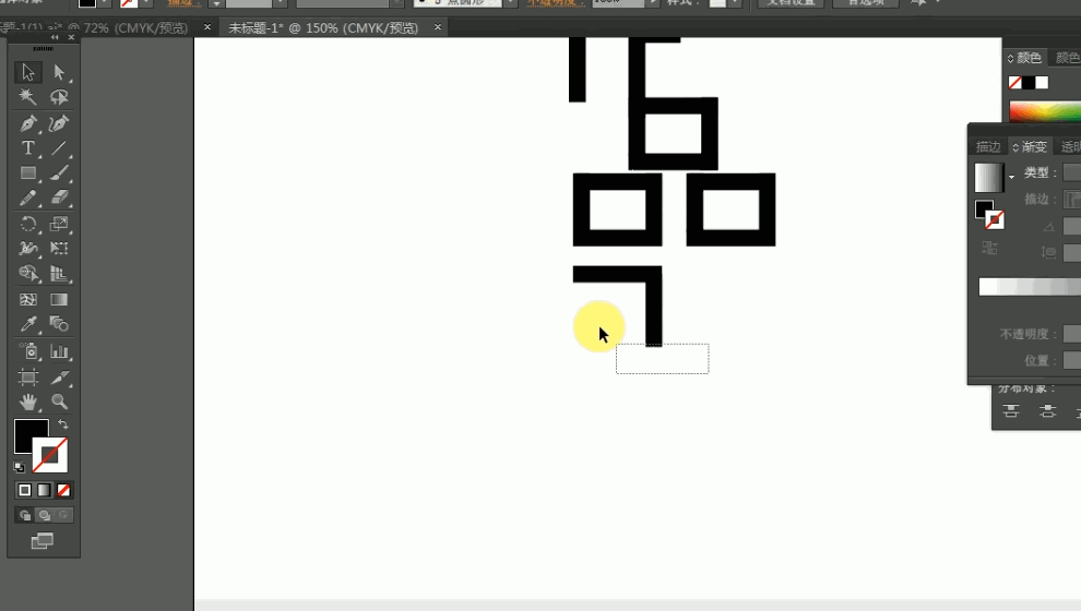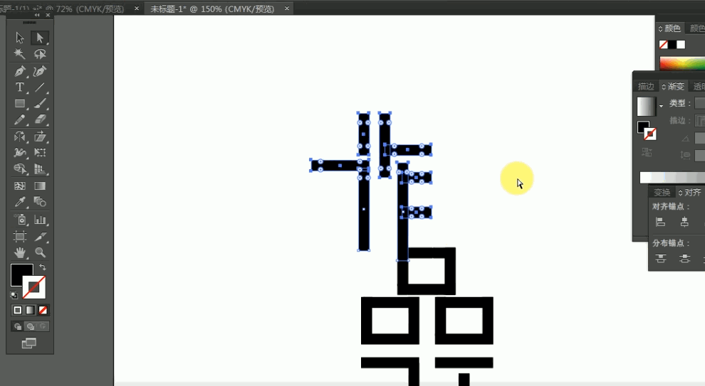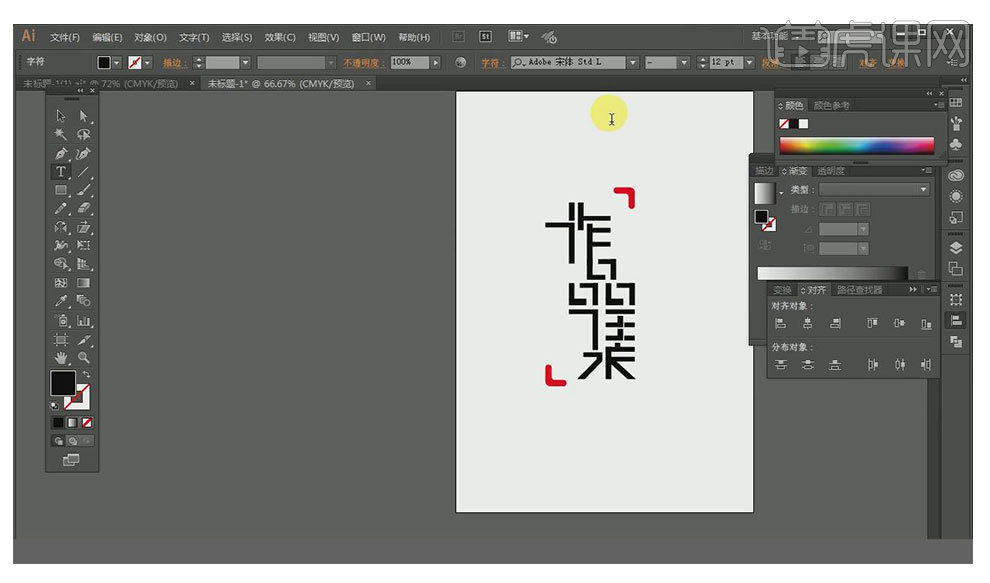 【字符】面板调整文字的字体字号,进行一个连笔设想。构成一个口字,